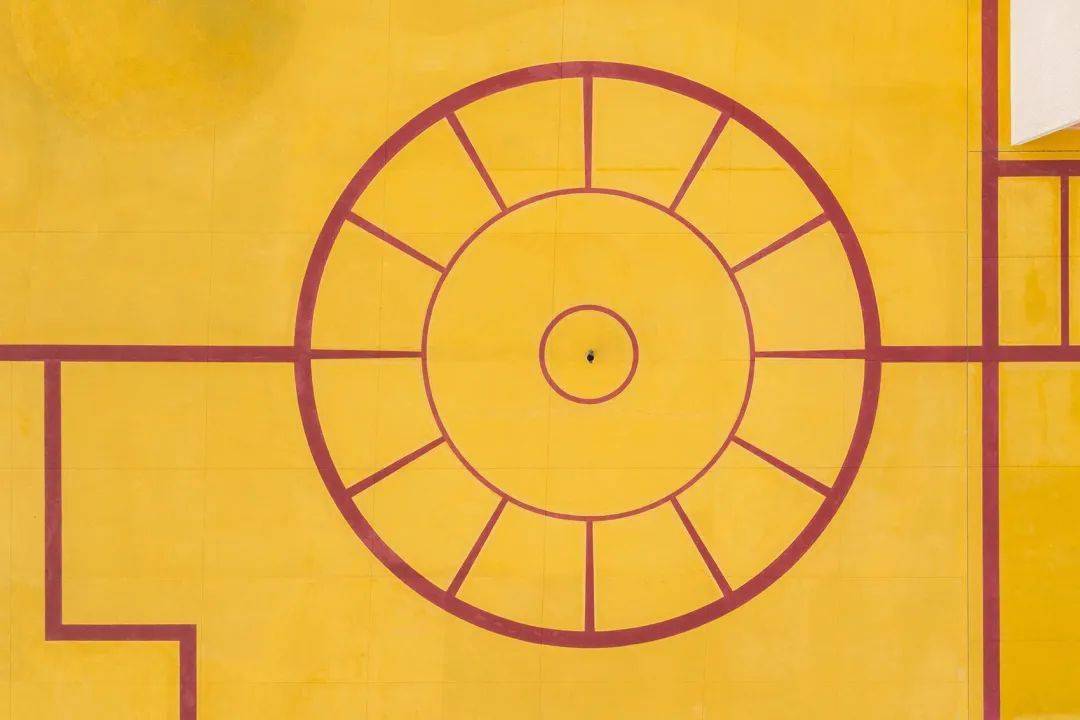 ▲晒谷场航拍CreatAR Images Wutopia Lab利用如稻谷一般金黄色透水混凝土配合暗红色线条分割形成一片永存的晒谷场景:有的划分成块状,有的呈现扇形分割,而在开阔处地形微微隆起,形成高低起伏的“谷堆”,站在上面放眼望去,仿佛一片凝固的丰收时光。