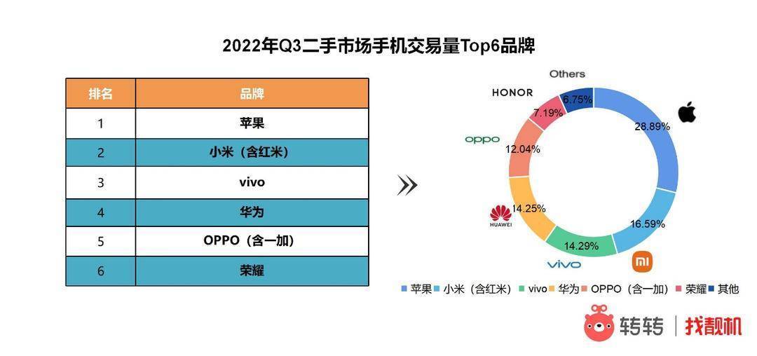 金九银十,巅峰相见。刚刚结束的2022年三季度,华为、苹果相继发布全新旗舰系列手机;迎来难得的销售旺季。10月10日,转转集团发布《2022年三季度手机市场行情报告》详解该季度国内新旧手机市场行情走势。 新旧市场行情热度有所回升 新机市场,7月小米率先推出小米12S系列和第二款折叠屏手机MIX Fold 2,开启了三季度高端手机市场的争夺战;进入9月,华为阔别两年推出Mate 50系列,随后频上热搜的苹果iPhone14系列“灵动”登岛。 高端市场之外,中端新机其实也在密集发布:vivo iQOO 10系列、华为nova10系列、荣耀X40以及小米civi2纷纷亮相,国内手机消费市场在经历出货量“大盘”整体下滑的“低谷”后热度有所提升。 二手市场,转转手机行情显示,苹果iPhone的交易量虽然仍居第一,但自2020年以来首次跌进“2”字头:该季度iPhone在二手市场的交易占比下降至28.89%;与之对应,国产手机品牌三季度在二手市场的交易量均在上涨。 从价格走势看,二手市场热销的旧款机型大多降价,但iPhone11以及华为Mate30和Mate40系列的部分机型价格在该季度微涨。 对此,转转集团数据部的分析师表示,手机消费的需求正在趋向多元化;随着消费但不浪费”的理念不断提升,新旧手机市场越来越丰富的供给也给消费者带来了更多选择。 iPhone14没“十三香”,二手iPhone11看涨 iPhone14似乎没有“十三香”。新机市场,苹果全新iPhone14系列发售后市场反响呈两极分化趋势:iPhone14 Pro系列目前畅销,iPhone14标准版却已“破发”。