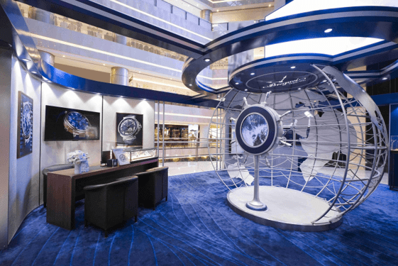 展览的设计灵感源于浩瀚海洋,以尊贵宝玑蓝为主色调,诸多细节之处皆与宝玑独特而极具标志性的大胆动感美学风格相呼应。展厅外立面有四幅画面呈现宝玑现代航海系列的时计臻品,亦以“历史航程,凝萃腕间 ”、“隽永美学,领航时光”、“卓越创新,开拓先锋” 和“精湛技艺,方寸寰宇”四句标语,将宝玑历史、美学、创新及技艺全然展现。步入展厅,Marine航海系列5557 Hora Mundi世界时腕表平面表盘立体化的“地仪”跃然眼前,可供观展嘉宾体验的互动装置环绕其中,一览此腕表惊艳的可记忆瞬时时区跳转功能。此外,可于展厅一角领略宝玑航海系列的璀璨历程,另一边的橱窗陈列着宝玑多枚堪称“传奇之作”的时计作品,引领嘉宾沉浸于品牌深厚底蕴中的航海情怀与卓越的制表技艺。到场宾客在静谧的空间可潜心探寻大航海时代宝玑先生倾注于航海事业与钟表发展的无尽瑰宝。
