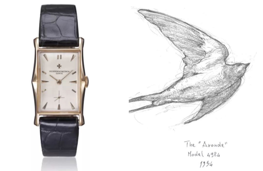 这块产于1952年的异边矩形江诗丹顿腕表,轮廓看上去像一只翩翩起舞的蝴蝶:表冠是蝴蝶的头部,而四个翼形表耳,正是蝴蝶展开的翅膀。
