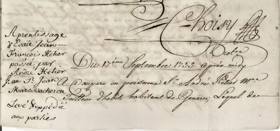 1755年Jean-Marc Vacheron签订的第一份学徒合同