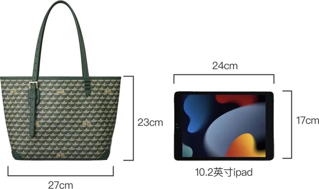除了能装万物的32号,27号也是比较日常实用的size,整体更加轻盈小巧,大小和11寸电脑差不多,装下iPad、充电宝和补妆产品妥妥的。经常出差或短途旅行的话可以选容量更加优秀的37号/41号托特包。