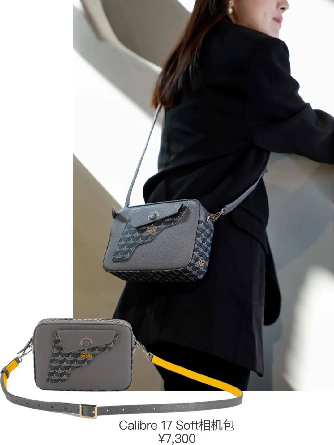 包面上装饰了最具标志性的手枪设计,点缀上龙鳞纹更会给人一种个性又强势的感觉,配上西装出街大杀四方,非常提气。